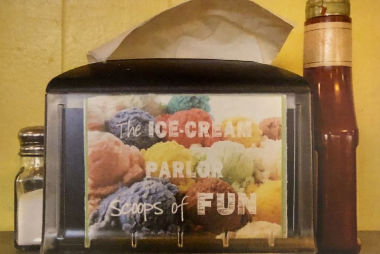 In 2015, Hill made a still-life photograph of a tabletop napkin dispenser at the Ice Cream Parlor on Northwest Broad Street. The picture’s composition struck a chord with Anthony Parks, the restaurant’s owner.
