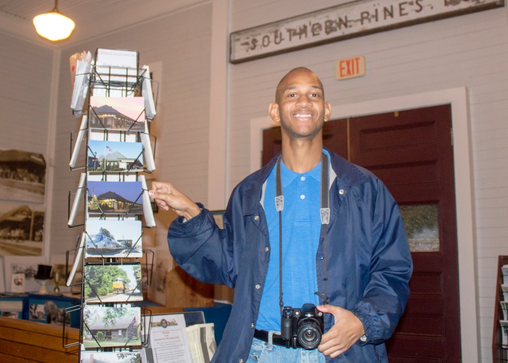 On weekends, Hill can be found roaming the sidewalks of Southern Pines in search of interesting things to photograph for the welcome center. Coleman said Hill will invariably visit every open business to chat with employees while making his rounds.